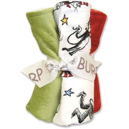 DR. SEUSS CAT IN THE HAT 4 PACK BURP CLOTH SET - 4 Pack Set: Cat in the Hat Scatter Print Percale, Black & White Gingham Seersucker, Red Star Velour, Green Star Velour; 1 each; 13" x 10" Feature
