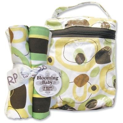 Perfect Gift Set contains Cupcake print consisting of insulated bottle bag with room enough for two bottles and/or other feeding items. Burp Cloth set contains four burp cloths that measure 13"x10" with fun modern print on one side and white terry on the other. Burp cloth set comes bundled with ribbon. Read morereview and image Cupcake Bouquet Set - Bottle Bag (# 102000) And 4 Pack Of Burp Cloths (# 101966)